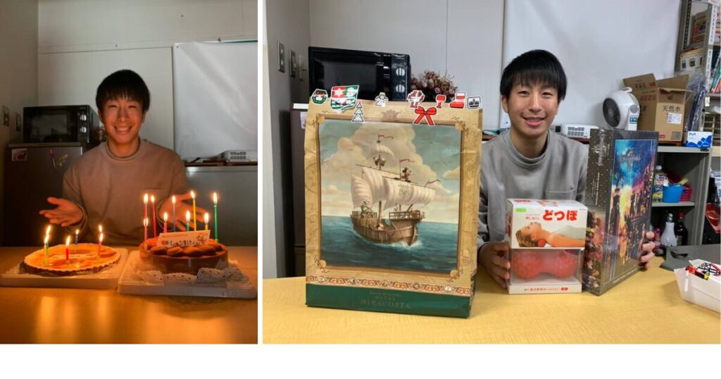 澁谷くんの誕生日会by Bussei2020年12月11日2025年8月15日 澁谷くんの誕生日会を3密を避けてやりました コメントを残す コメントをキャンセルメールアドレスが公開されることはありません。 ※ が付いている欄は必須項目です名前 ※ メール ※ サイト コメント ※ 次回のコメントで使用するためブラウザーに自分の名前、メールアドレス、サイトを保存する。 上に表示された文字を入力してください。 前の記事: 2020年室内環境学会学術大会@郡山にて発表(共著の研究) 一覧に戻る 次の記事: 2020年室内環境学会学術大会@郡山にて大会長奨励賞を受賞(大石さん、船水さん)